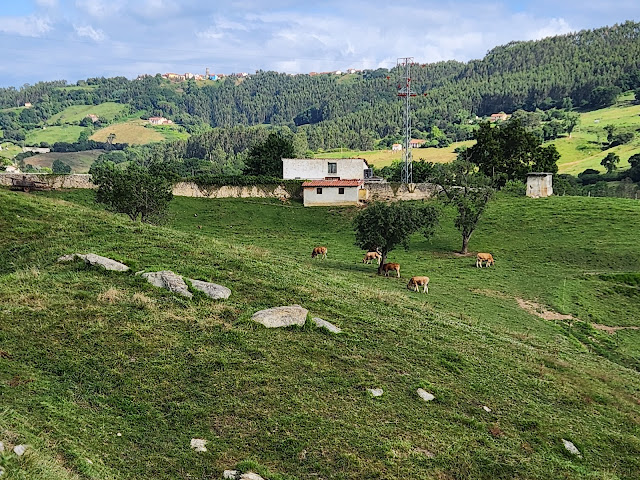 We began our day just after 6:00 am, climbing into the hills surrounding the beach village of San Vicente de la Barquera. The views were lovely. Below is a picture of the Castillo de San Vicente alit in the background.